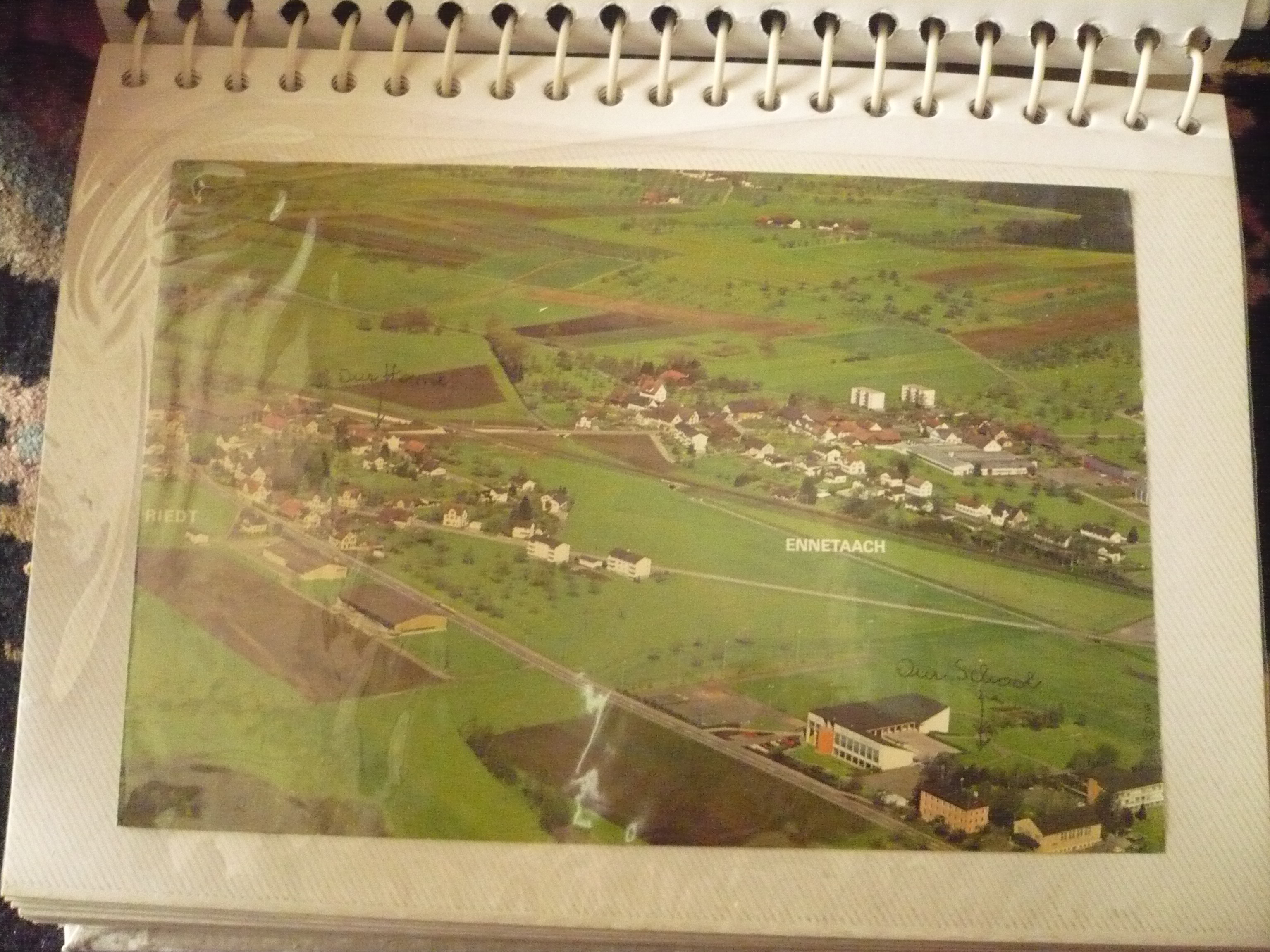 Here is a picture of Vreni's childhood home and school, relative to the town of Erlen. If you look closely you can see where she wrote "Our Home" and "Our School".